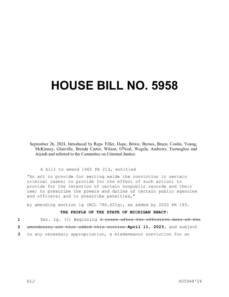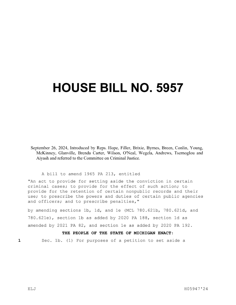 HB 5957 and HB 5958 introduced by Michigan lawmakers to favorably modify expungement eligibility MCL Admin 1 year ago Facebook Comments See more