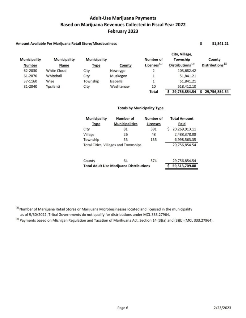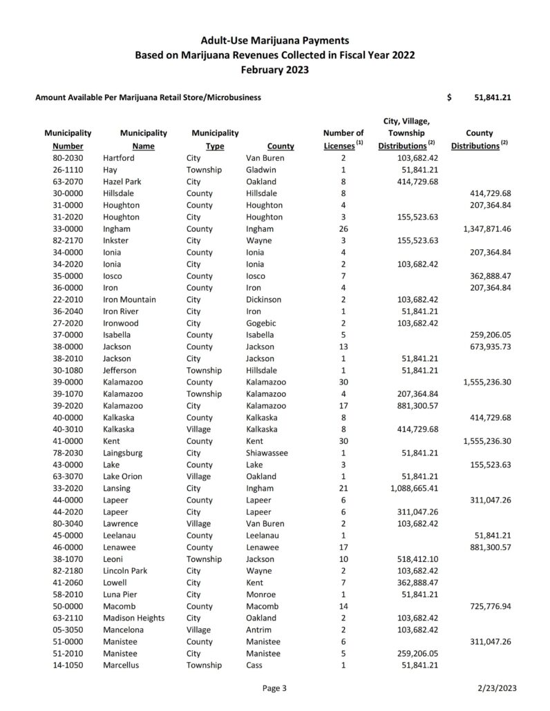 MI FY2022 Adult Use Marijuana Excise Tax Distributions MCL Admin 3 years ago Facebook Comments See more