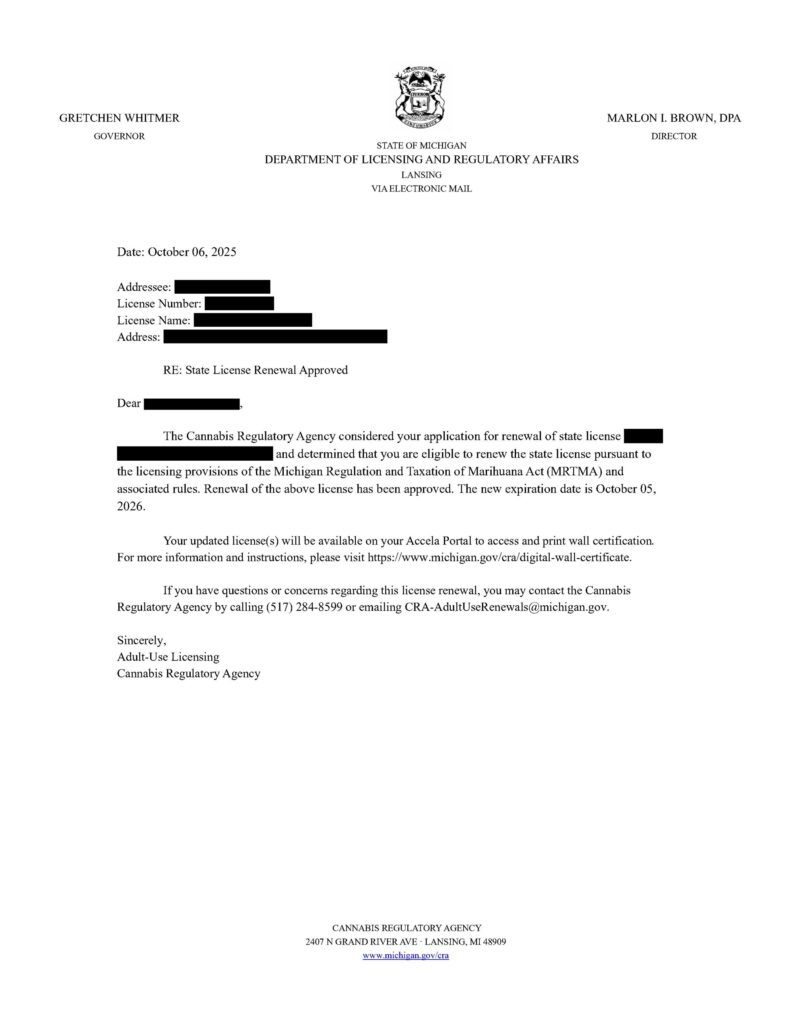 The Medical Marihuana Facilities Licensing Act became effective December 20, 2016 and the State of Michigan is currently accepting applications for the 5 types of licenses allowed under the MMFLA.
